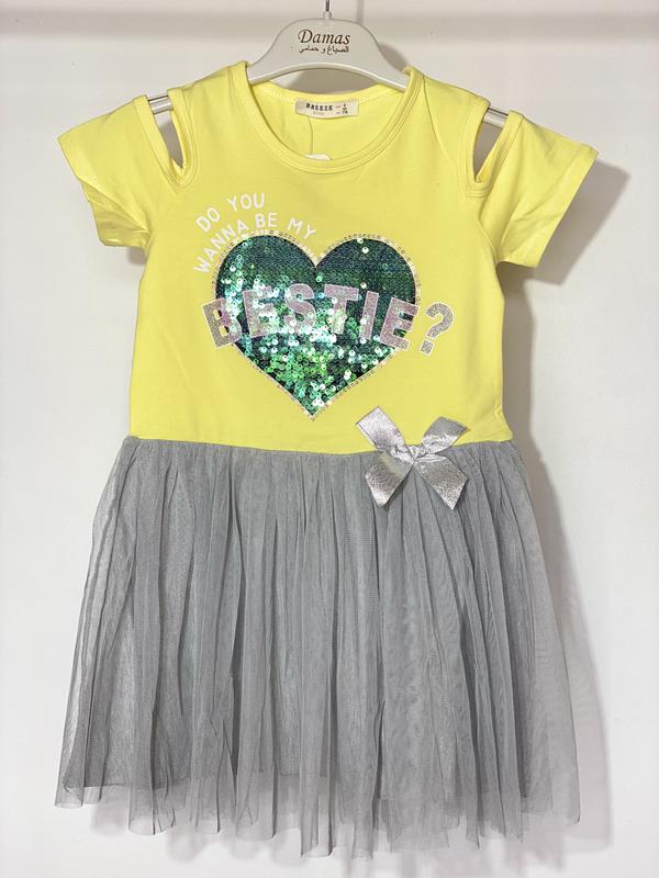 Платье для девочки с фатиновым низом, верх желтый низ серый. Состав 95% хлопок, 5% эластан.