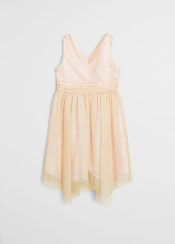 Нарядное платье MANGO на 5 лет на р.110, на 7 лет на р.122 и на 10 лет на р.140. Струящаяся ткань . Блестящая ткань . Расклешенный дизайн . V-образный вырез . Застежка-молния . Состав: 100% полиэстер.