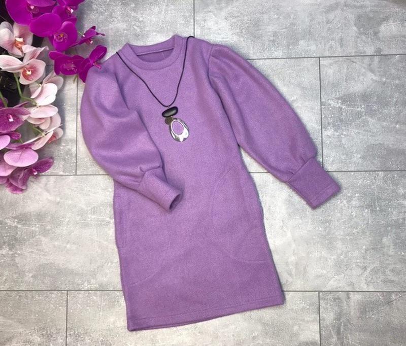 Модное тепленькое платье , ткань плотная вязка, есть кармашки,укращение входит в комплект. Цена 520грн длина/рукав/пог 128-70/47/37 134-73/48/38 140- 76/52/39 146- 81/55/40 152-83/56/41