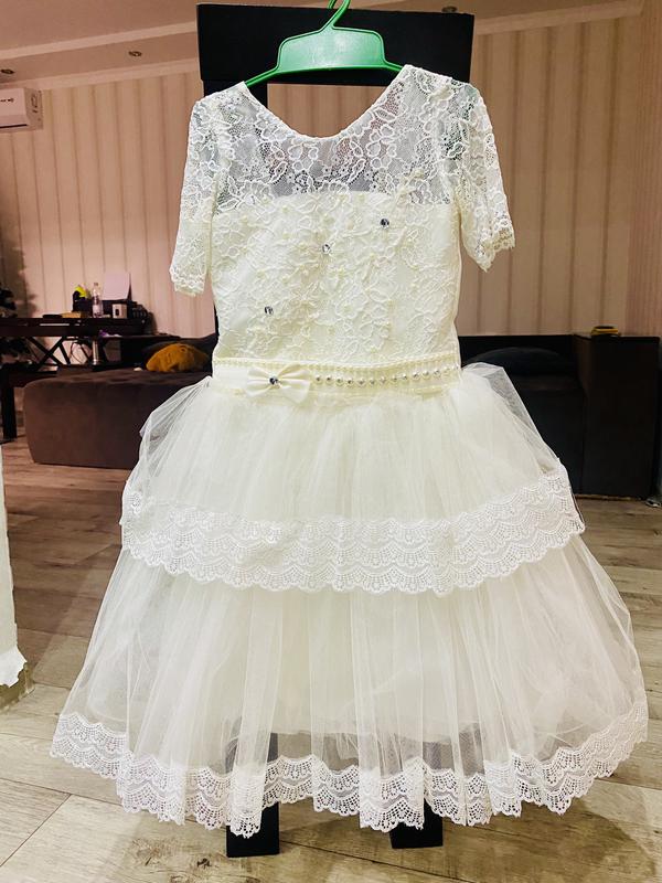 Праздничное платье для девочки /Святкова сукня для дівчинки Дуже гарна та ніжна сукня кольору слонової кості. Прикрашена же чужинками, бісером та стразами. Витончена та святкова. Підходить на зріст 104-112. Всі заміри та додаткові фото за запитом.