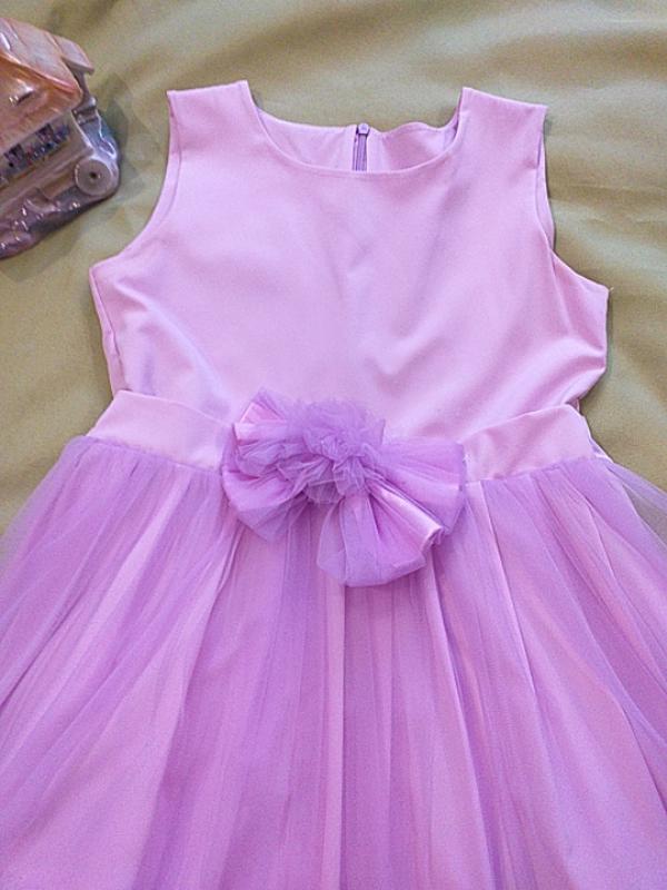 Нежное сиреневое платье из органзы и шелка.Подкладка хлопок.Шелковый поясок.на спине молния.Длина от плеча 71см.обхват по талии 68см