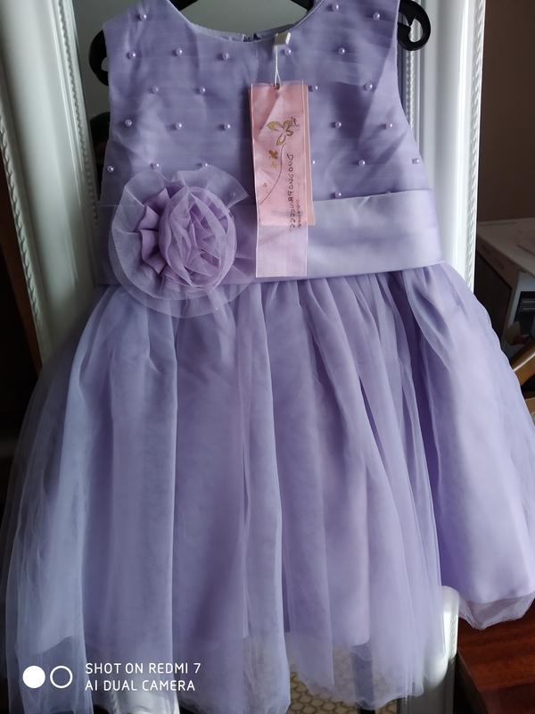 Новое платье нежно сиреневого цвета на возраст 3-4 года, рост 98-104(возможно и на 5 лет см. замеры, ). На спинке замочек и пояс в виде банта. Замеры: полуобхват груди 29, 5 см от плеча до талии 21 см от талии до низа 39 см общая длина 60 см