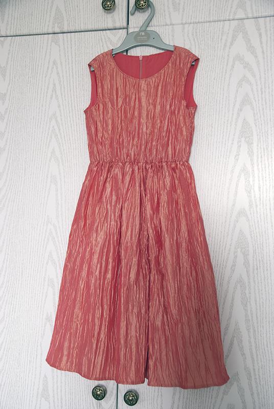 Платье нарядное из жатой тафты оранжево-розового цвета с золотым отливом Шело в виде платья Осень Осени Возраст: 5-6 лет Материал: тафта синтетическая, подкладка батист х/б с оборкой из фатина (для придания объема) Индпошив. Эластичная тесьма собирает платья по линии талии, пояс - эластичная тесьма из пайеток. Замеры: Длина - 78 см. Объем талии - 50 (в собранном виде) Стан нового (только раз оденет на утром)
