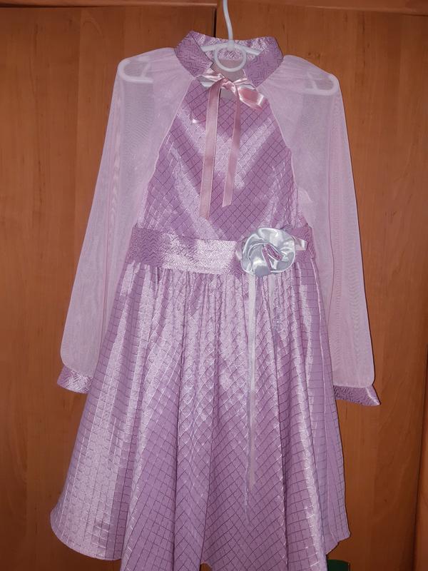 Продам нову святкову сукню на дівчинку бузкового кольору під пояс з накидкою, верх полієстер підкладка бавовна українського виробництва заміри ширина плеча 25см пог 31см довжина сукні 70см довжина накидки 19см довжина рукава в накидці 50см