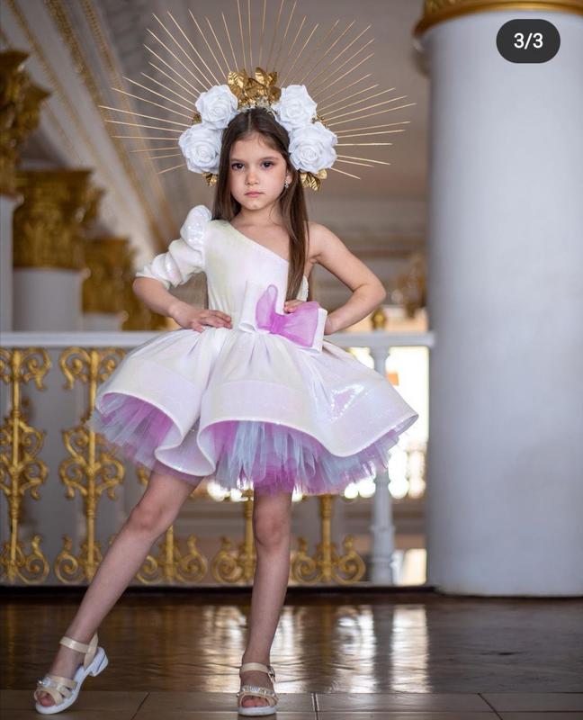 Платье нереальной красоты, на выпускном мы с дочерью получили массу комплиментов. В этом платье малышка точно будет звездой вечера. Форму держит очень красиво, мягкая паетка не колется. Внутри х/б подклад. Надевали 1 раз на выпускной в садик буквально на 2 часа. Состояние абсолютно новой вещи. Платье дизайнерское. Размер 110-116 см, замеры дам. Покупали за 2500 грн. Есть наложенный платёж по предоплате за доставку в обе стороны 200 грн