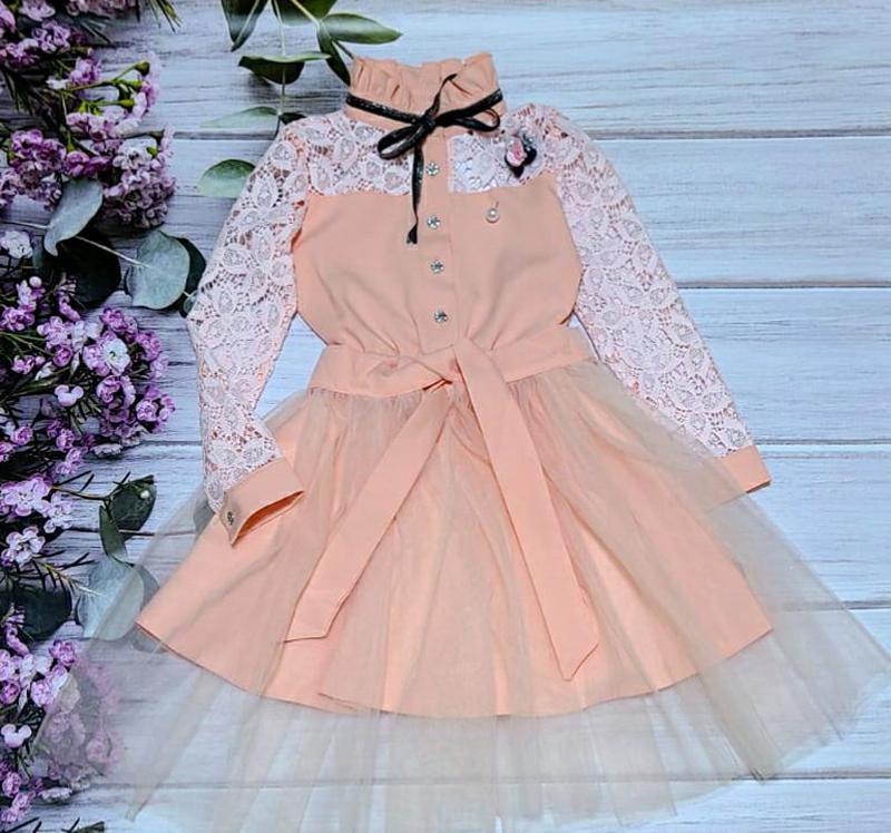 В наличии 😍 Нарядное платье с фатиновой юбкой на завязках На рукавах есть манжеты Застёгивается на пуговицы В реале очень красивое Ткань костюмка,фатин брошь съёмная, отстёгивается Цена 445 грн замеры :платье-длина/рукав/пог-длина юбки 122р-65/46/32-47 128р-67/47/33-48 134р-70/48/34-50 140р-74/49/36-52 146р-75/53/38-54