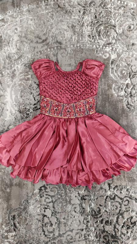 Нарядное платье на девочку 3-5 лет.Как новое.Очень красивое и пышное.Подкладка хлопок,приятна к телу.Замеры:длина-59 см,ширина-29 см,талия-28 см,сзади завязывается на бант.