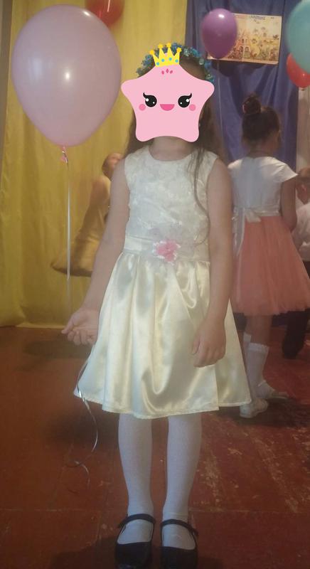Одевалось несколько раз. Идеальное состояние. На 7-9 лет. Длина 66см, ширина под ручками 30,5см. Цвет айвори.