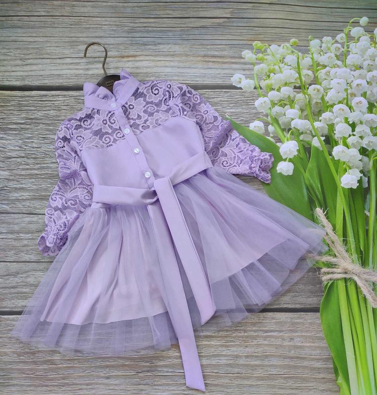 Миленькое платье с поясочком ткань трикотаж со вставками гипюра застегивается на пуговки Производитель Украина длина юбки без учёта фатина 110(2 шт)-длина 55,рукав 38,пог 29 116(2 шт)-длина 56,рукав 40,пог 30 122(2 шт)-длина 60,рукав 43,пог 31 128(2 шт)-длина 63,рукав 46,пог 32 134(2 шт)-длина 68,рукав 49,пог 33 допустима погрешность +-1 см