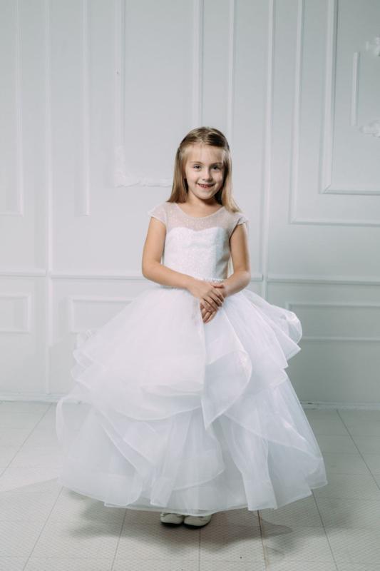 Колір : білий, Шампань, персик Розмір 5-8 р ( зріст 110-128) Ліф 64 см в обьємі Довжина 95 см - тканина євросітка, глітер, атлас