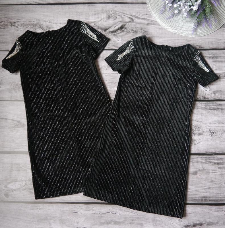 Невероятно красивое платье украшеное бахромой со стразами Ткань: бархат с люрексом. На спинке молния. Цвет - черный. Отличное качество! РЕКОМЕНДУЮ! Производитель - Украина. повар Замеры: 134 - длина - 67см, полуобхват груди - 32см. 140 - длина - 70см, полуобхват груди - 34см. 146 - длина - 74см, полуобхват груди - 36см. 152 - длина - 78см, полуобхват груди - 38с
