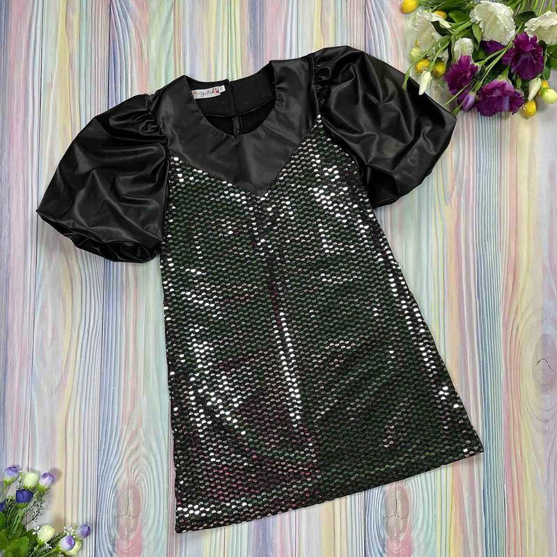 Шикарне плаття для модняшок ♥️ Тканина екошкіра масло + декоративна паєтка на маслі, тканина не колеться, Шикарний модний рукав Заміри: Довжина/пог 140 - 68\35 - 2 146 - 70\37 - 1 152 - 74\39 - 1 158 - 78\41 - 2 мар сашулт