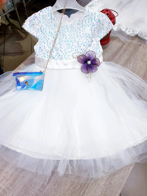 безопасной оплаты нет!!! 🔸Шикарне плаття + сумочка 🔸До тіла хлопкова підкладка,паєтки , які дуже яскраво переливається 🔸 ззаду плаття підтягується на красивий фатиновий бант 🔸Вироб.Туреччина 🔸Заміри довжина/ширина спинки 5р -57/27 6р -59/28 7р -62/29