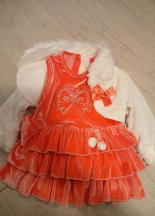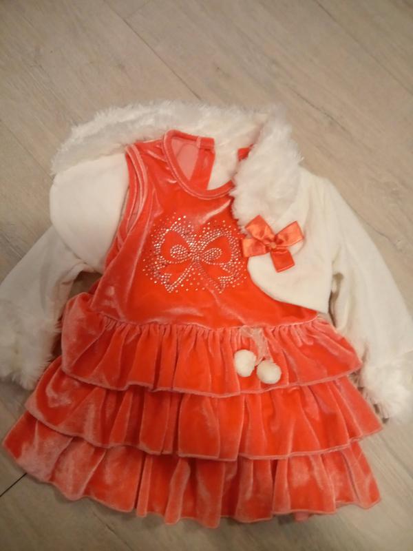 Святкова сукня на дівчинку,в чудовому стані,одягали кілька разів.Є невеликий дефект,загубили камінчик з бантика на болеро,колір кращий ніж на фото(кораловий).Можливий торг