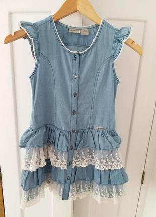 Фірмове плаття, стан ідаельний, одягали 2-3 рази. вік 6-8 років. Тканина тонкий джинс. Вигляд шикарний.
