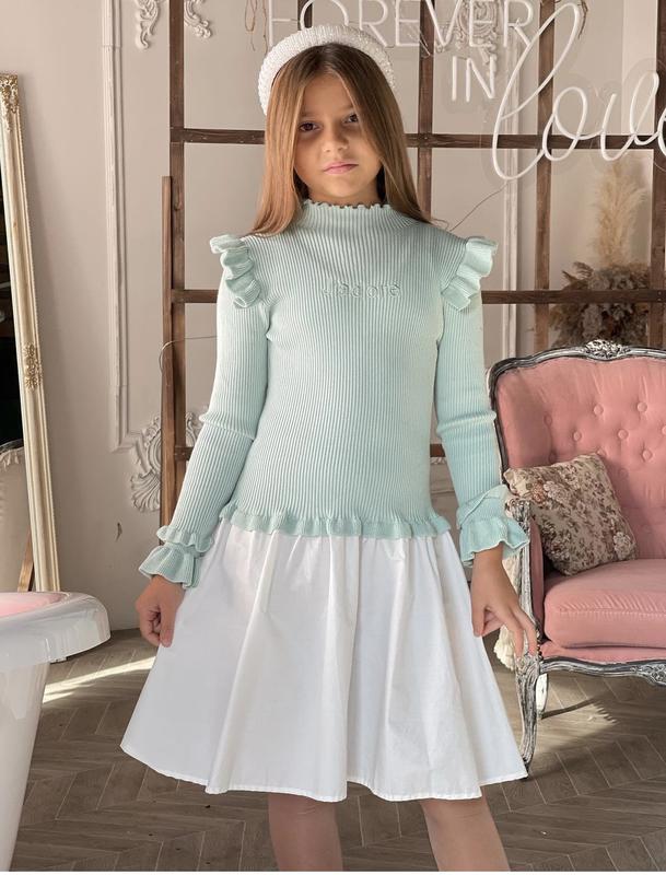 Элегантное красивое натуральное платье Jadore Немного мятного цвета трикотаж и юбка котон В наличии размеры 6,10,12,14 лет