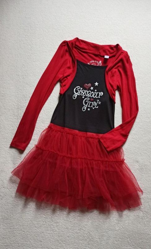 Крутое нарядное платье для девочки 10-11 лет. Как новое! Мягенькое и к телу супер. 100% вискоза. Юбочка - мягенький фатин, многослойный и пышный. 100% полиамид. Есть похожее в синем цвете. Длина 71см, с фатином 78см, длина до пояса юбки 44см, плечи 31см, ПОГ 32-41см, ПОТ 31-36см, ПОБ на резиночке 33-40см. Укрпочта, НП, Джастин - оплата доставки при получении. Покупайте и носите с удовольствием!) При заказе от двух вещей - скидки!)