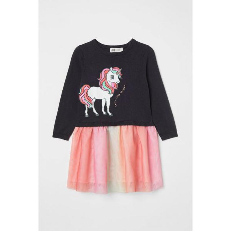 платье для девочки. Украшено принтом. Юбка платья фатиновая с полиэстеровой подкладкой. С длинным рукавчиком. Состав: верх 100% хлопок; юбка и подкладка 100% полиэстер. Розмір Довжина по спинці, см Ширина під руками, см Довжина рукава від плеча, см 1.5-2 роки 48 30 33 2-4 роки 56 32 37 4-6 років 64 34 41 6-8 років 71 37.5 46 8-10 років 77 40 51