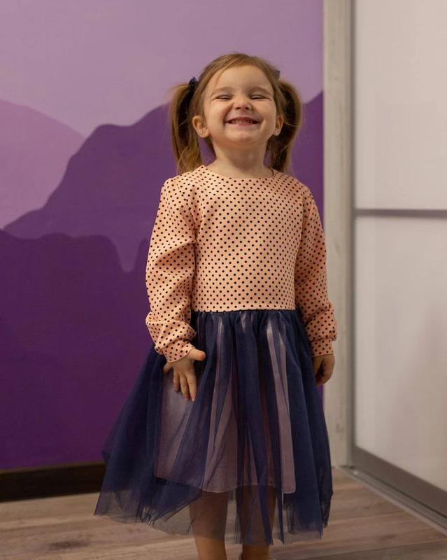 Плаття горошок довгий рукав🔝 Розміри: 104,110,116,122 Матеріал: верх - тканина костюмна, низ євросітка, під сіткою підкладка, замок ззаді, пояс зав'язується 104- плечі 28, рук 36, по гр 29,дов 60 110- плечі 29, рук 37, по гр 30,дов 64 116- плечі 30, рук 38, по гр 31,дов 66 122- плечі 31, рук 39, по гр 32,дов 68 Ціна: 500 грн.
