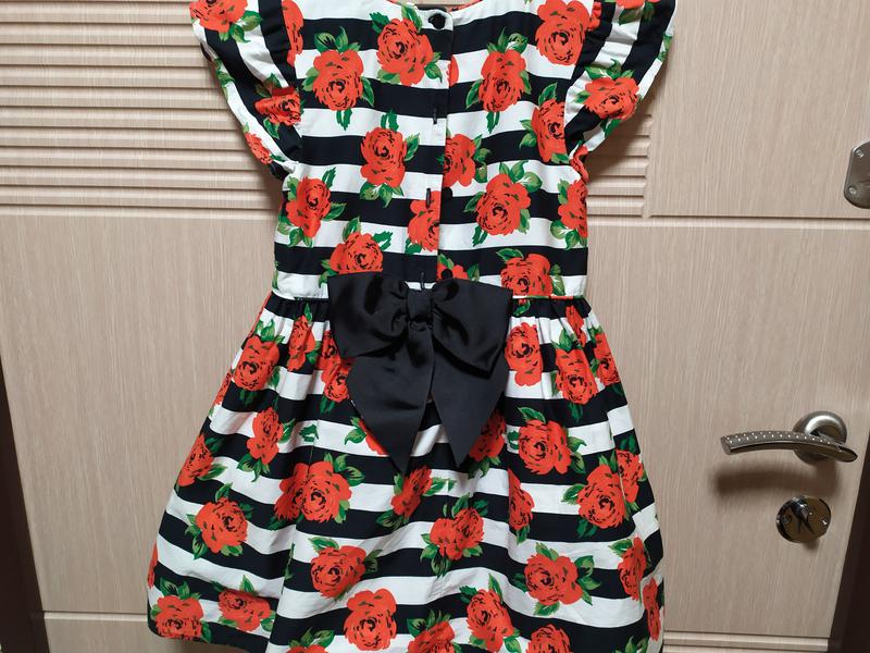 милое платьице с красивым принтом розочки.на спинке застёжки пуговки на пояснице бантик .верх котон.низ полиэстер .подъюбник несколько слоев воланов .от этого юбочка пышная .на рост 122 см 6-7 лет длина 61 см плечи 27 см в груди 33 талия 33см пройма рукава 18 см . состояние новый сток люкс .без следов ношения на внешний вид .чистое.такое же яркое как и на фото оплата и почта любые в наличии