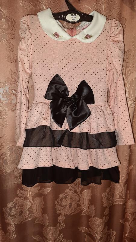 Продам нарядное платье на девочку. 100% хлопок. Замеры по изделию: рукав от шва на плече 37.5 см, длина по спинке 50 см. Платье тянется. Молния на спине.