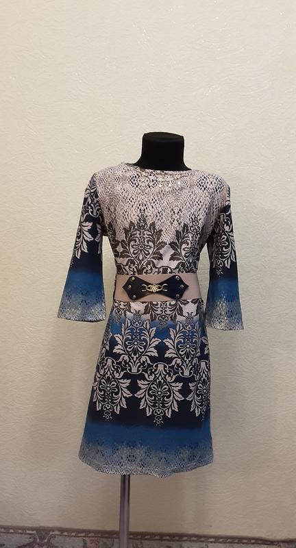 Красивое платье для девочки Diren. Платье без подкладки,пояс входит в комплект-очень красивый.Рукав 3/4.Яркие,красивые украшения.На спинке молния 44 см. Цвет:синий ,комбинированный. Размер : 30 (122 см-7 лет) Состав: 64 % полиамид,30 % вискоза,6 % эластан. Замеры : Длина по спинке 77 см ,ширина под мышками 36 см,длина рукава от плеча 36,5 см - рукав 3/4