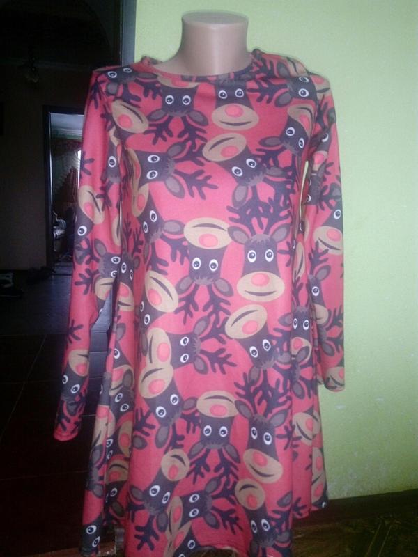 Платтячко із оленями без дефектів. Довжина 82см ПОГ 44см Довжина рукава 60,внутрішній шов 50см
