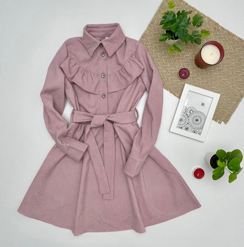 🌸ШИКАРНОЕ ПЛАТЬЕ ! с рюшем под поясок на пуговках в талии под резинку 🌸ткань турецкий микро-вельвет КАЧЕСТВО ЛЮКС! размер/🌸длина/пог/рукав 134/🌸73/36/49- 140/🌸76/38/52- 146/🌸80/39/54- 152/🌸81/41/56- 158/🌸85/42/59- +-2см
