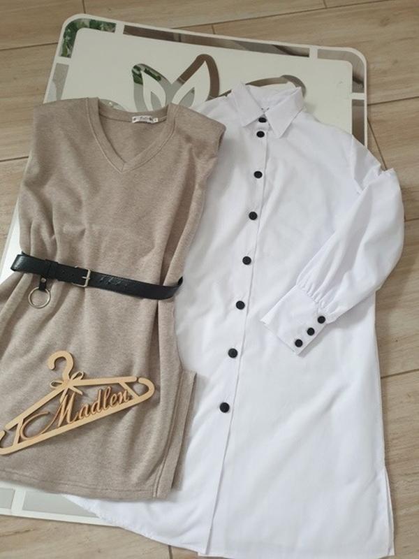 Сукня-сорочка з жилеткою для дівчинки, сорочка тканина х/б, жилетка на подплечниках, тканина ангора двостороння,поясок в комплекті. ціна 645 дл. руб./пог/рукав/дл.жив./пог 140-80/47/50/69/49 146-83/47/53/72/51 152-87/48/56/75/53 158-90/49/58/77/54 164-93/51/60/80/55