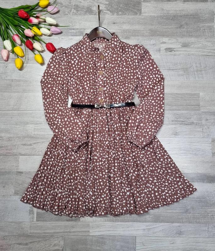 В наличии 🧡 Красивое платье с плиссировкой рукав фонариком ткань супер софт застегивается на пуговки воротник стоечка , в поясе и на рукавах есть резиночки поясок входит в комплект Цена 550 замеры:длина\рукав\п********** 140- 73/ 53/ 40 146- 77/ 55/ 42 152- 81/ 57/ 44 +-2см