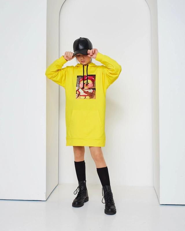 Хит сезона!!! нашумевшая уточка платье-туника с капюшоном и карманом кенгуру ткань качественная двунитка пенье катышам стоп! уточка-нашивка на каждой расцветки будет своя в соответствии с цветом СУПЕР КАЧЕСТВО!!!! ирис размеры 122-152