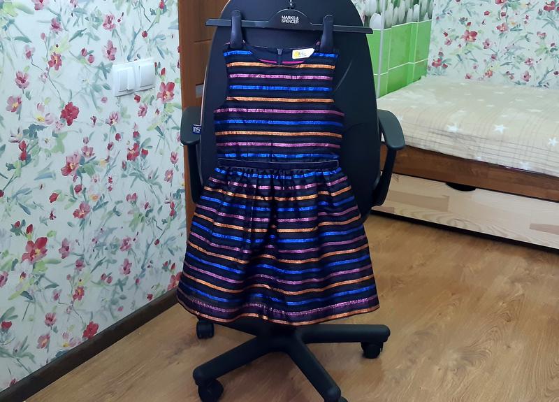 Шикарное платье, на 6-7 лет, в идеальном состоянии. Платье пышное, держит форму, 2 фатиновых подьюбника и подкладка 100% хлопок. Длинна 63 см; Ширина под руками 31 см; Пояс 29 см.