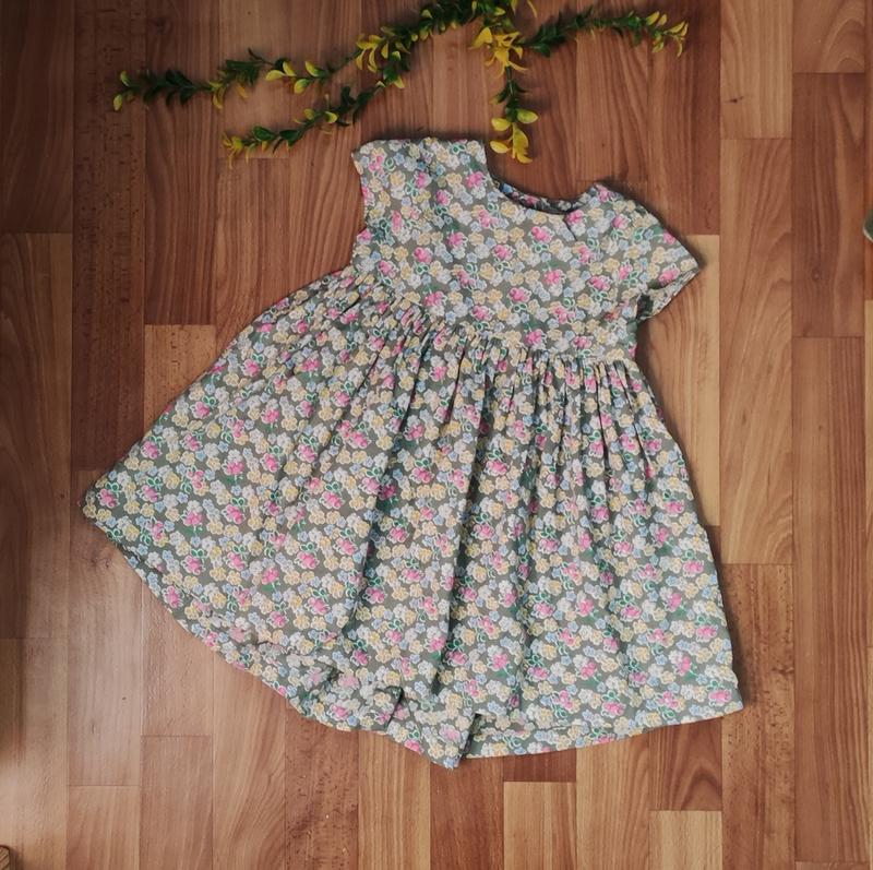 Хлопковое платье с завышенной талией, сзади подол длиннее. Замеры: длина 51 см, сзади 55 см. полуобхват груди- 30 см.