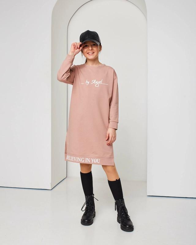 ХИТ СЕЗОНА 🍇платье оверсайз ткань трикотаж пенье двунитка качество ЛЮКС! надпись может отличаться 🍇рекомендую!!! размер/🍇дл./пог/рукав от горловины 140/🍇79/46/54-3шт 146/🍇81/47/56-3шт 152/🍇85/48/59-3шт 158/🍇87/49/60-3шт 164/🍇88/51/63-3шт