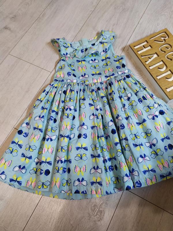 Нарядна сукня в метелики. Взаді на потаємному замочку нижче пояса. Підкладка: шар фатину від поясу, і підкладка по всій сукні. Бренд Marks & Spencer. Вік 2-3р. (ш)