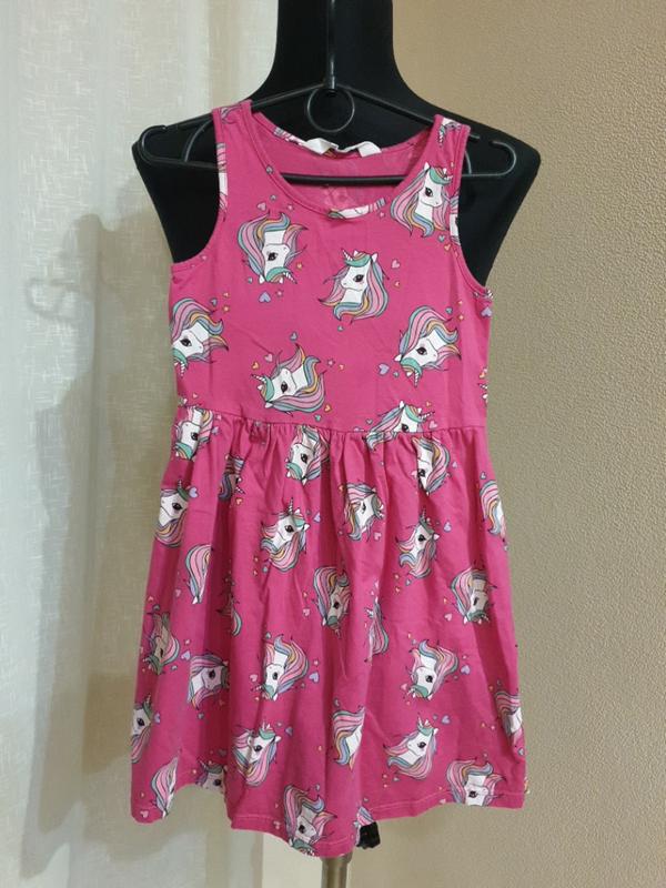 Трикотажное платье H&M для девочки без рукавов с принтом. Отрезная талия и расклешенная юбка. Размер на 6-1ю8 лет, на рост 122/128.