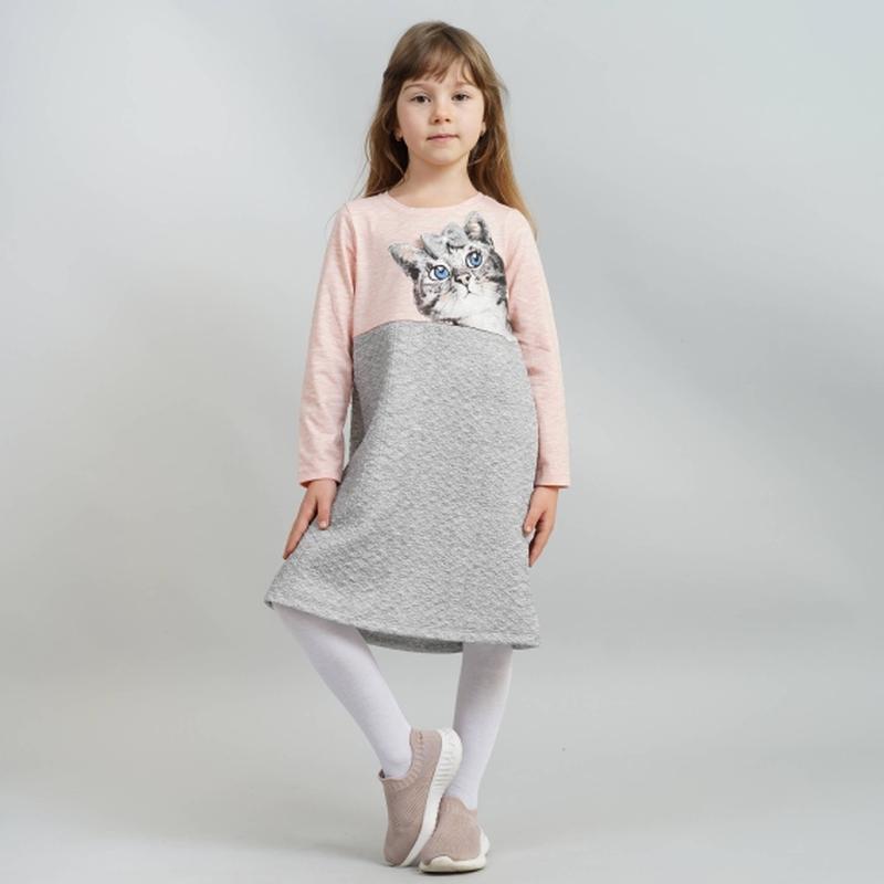Это платье имеет достаточно контрастное сочетание цвета серого с цветами на выбор. Впереди есть силуэт мордочки кошечки, что особенно понравится девочке. Полотно изделия: сверху – фуликра, низ – капитан. Замеры: Рост 92см(2 года):Длина-54см,Ширина по груди-28см,Рукав-32см Рост 98см (3 года):Длина-57см,Ширина по груди-29см,Рукав-34см Рост 104см(4 года):Длина-61см,Ширина по груди-29см,Рукав-36см Рост 110см (5 лет):Длина-64см,Ширина по груди-31см,Рукав-38см