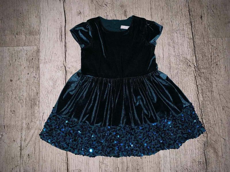 Шикарное платье с пайетками M&S Kids (12-24 мес) изумрудного цвета (на подкладке) Полномерное , подойдет на 12-24мес Длина 47 ПОГ 26 + сток, без бирок.
