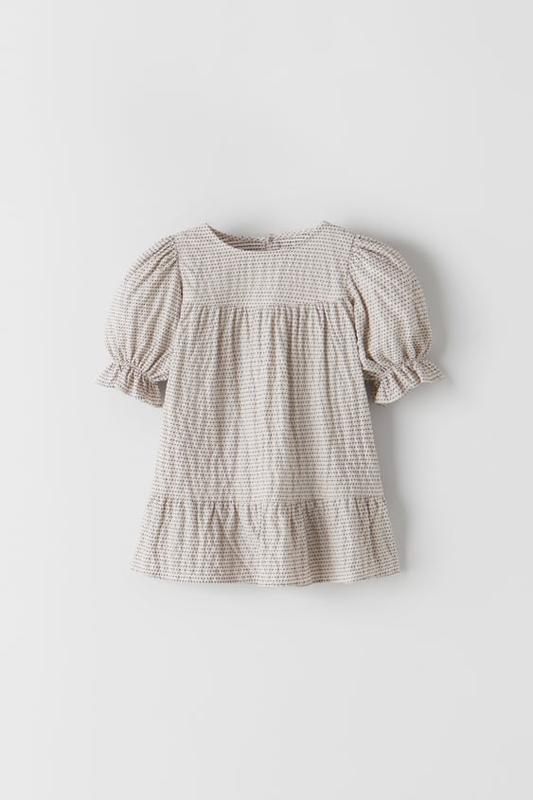 Платье в горошек ZARA Размер 4-5 лет (рост 110 см) Длина 58 см Ширина под рукавами 32 см Плечи 23 см 56 % хлопок 43 % вискоза 1 % эластин