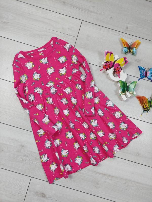 Трикотажное платье в единорогах для девочки 5-6лет по бирке,как новая вещь. Дл.60см до пояса 20см пог 30см рукав 38,5см