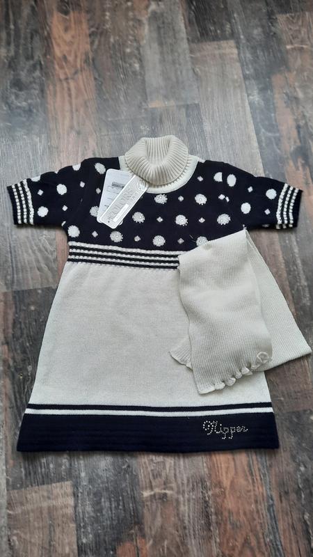 Длина платья 50см. Обхват груди 64см. ширина платья внизу -80см. состояние 30% - шерсть,70%-акрил. Производство Турция. Цвет темно-синий с молочным.