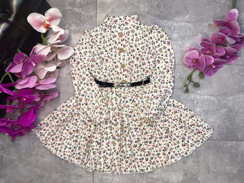 Гарне плаття з плісировка, рукав ліхтариком ,тканина супер софт , застібається на гудзики , комір стійка , в поясі і на рукавах є резиночки , поясок входить в комплект. довжина/рукав/пог 104р-58\42\30 110р-60\43\31 116р-64\45\33 122р-67\47\34 артмаѕуа