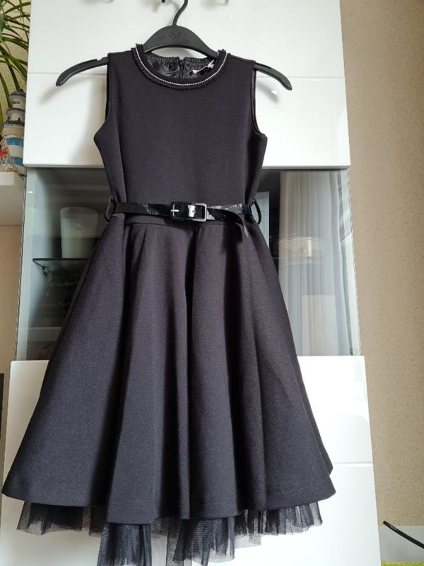 💞 ошатне плаття чорного кольору від італійського бренду Y-clu 💞 розмір 140-146 см 💞 верх трикотажний, під'юбник фатиновий кілька шарів+ атлас 💞 біля шиї гарно інкрустовано камінчиками 💞 застібається на змійці по спинці 💞 пояс в комплекті