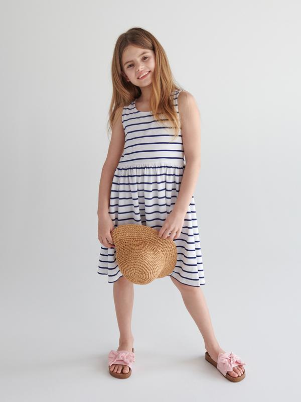 Летний сарафан, белый в темно-синюю полоску, 110 р и 164 р, reserved