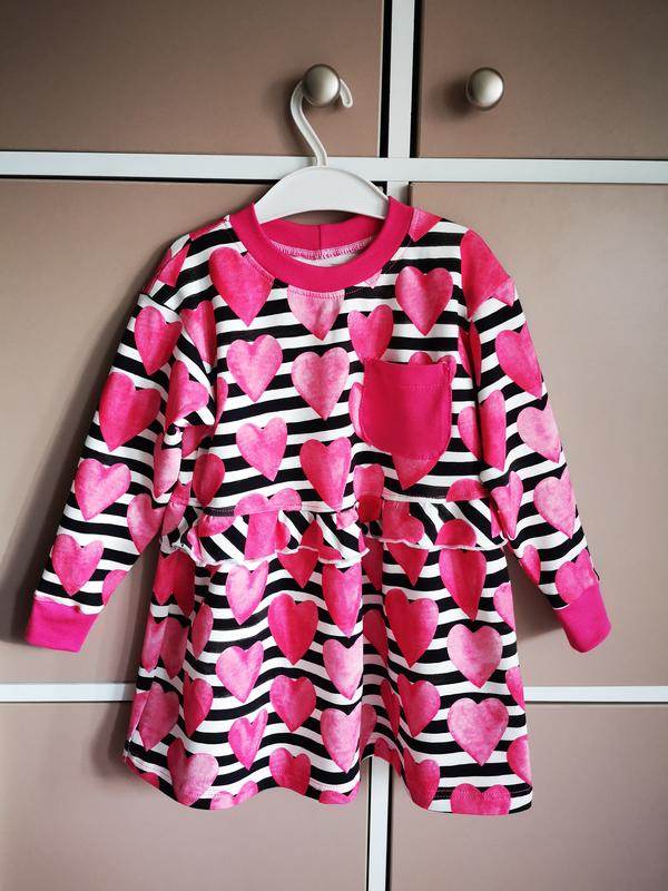 Платье принт сердца выполнено из трикотаж петля двухнитка.