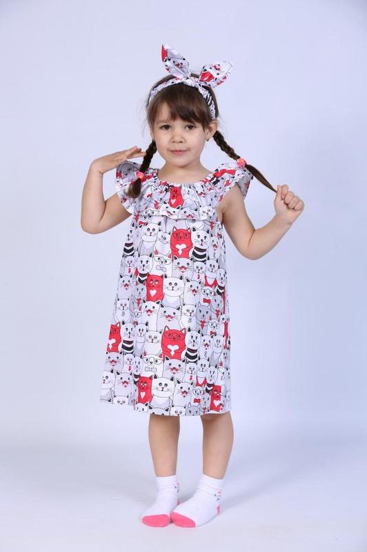 Летний сарафан для девочки Котики Размеры 92 Цвет серый