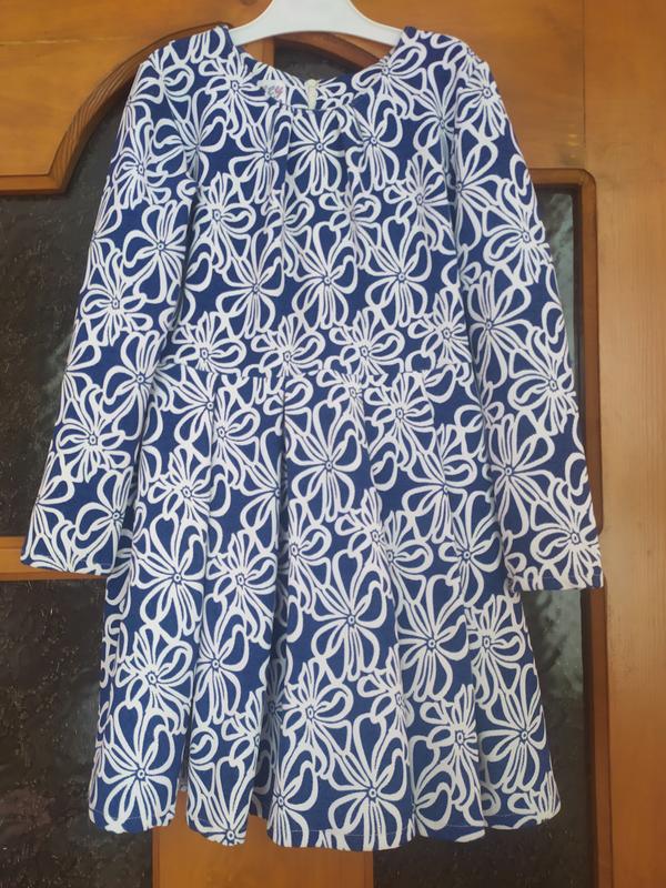 Красивое платье. Состояние отличное. Размер указан 134, но идёт где-то на 7-8 лет. Смотрите замеры. Длина от плечевого шва 67см, ПОГ 33см, ПОТ 31см, рукав 47см. Ткань плотная.
