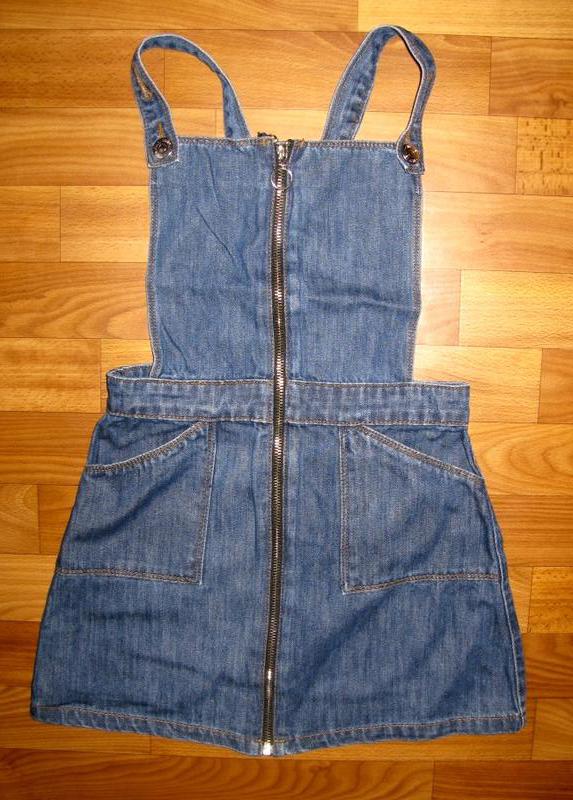 джинсовый сарафан Matalan на 10 лет. 100% хлопок. Впереди полностью на молнии. Бретели регулируются на 2 положения. Длина от плеча максимально с бретелью-68 см (можно укоротить на 6,5 см), длина юбки- 34,5 см, ПОТ-32 см (есть утяжка), ПОБ-42-43 см. Состояние отличное- 220 грн