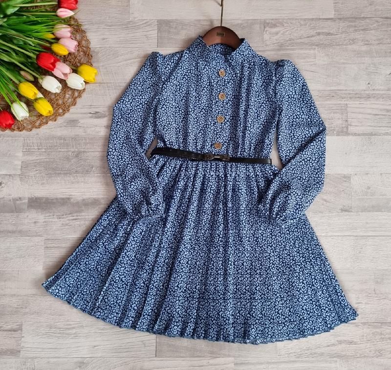 🧡В наличии 🧡 Красивое платье с плиссировкой рукав фонариком ткань супер софт застегивается на пуговки воротник стоечка , в поясе и на рукавах есть резиночки поясок входит в комплект замеры:длина\рукав\пог 134- 70/ 51/ 38 140- 73/ 53/ 40 146- 77/ 55/ 42 152- 81/ 57/ 44 +-2см артchild