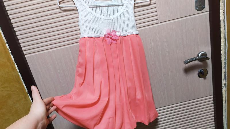 красивое летнее платье цвет как на фото коралл верх хб сеточка до низу она и подкладка верх тонкий шифон .длина60см в груди .31-33см возраст 3-5 лет ,есть мелкий ньюанс на шифоне зад в глаза не бросается. в складках .оплата и почта любые